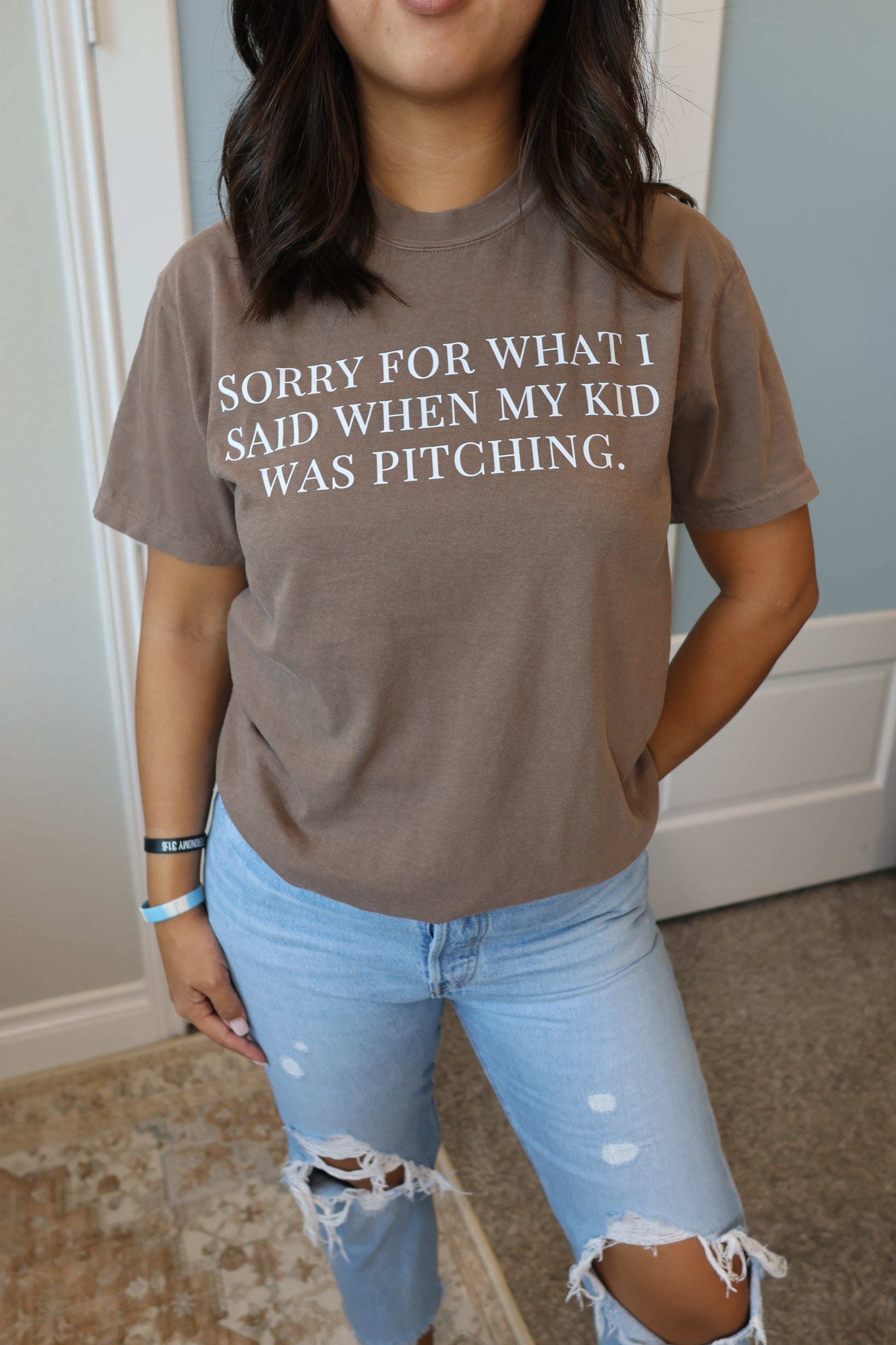 Keep it real on game day with this Comfort Colors tee in Espresso, featuring the playful phrase: “Sorry for what I said when my kid was pitching.” Soft, relaxed, and perfectly broken-in, this shirt captures every baseball parent’s truth with a little humor and a lot of comfort.